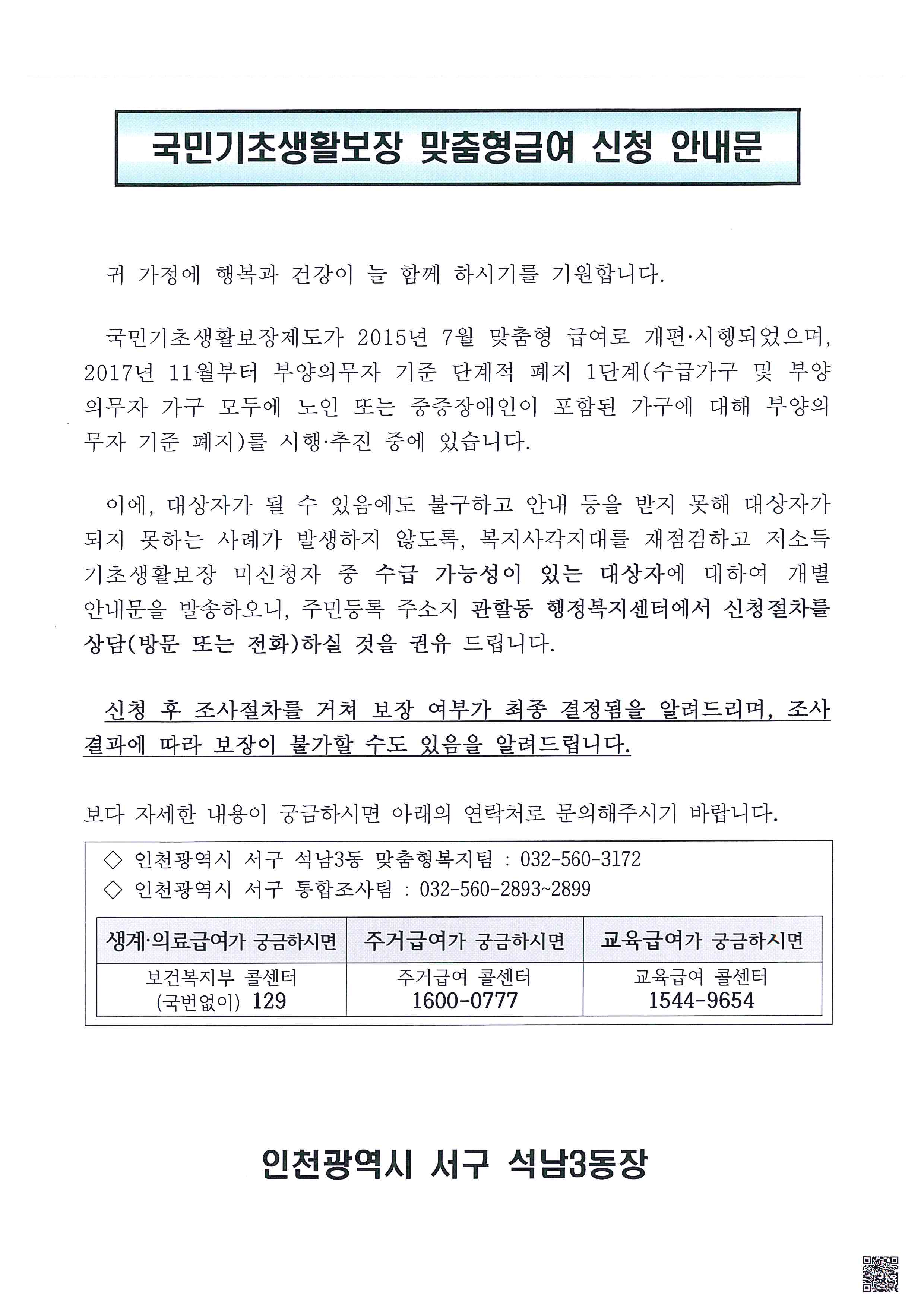 맞춤형(생계,의료,주거)급여 신청안내(2월)