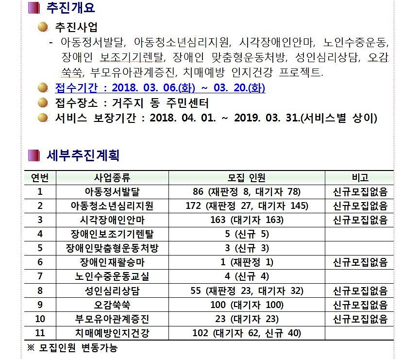 2018년 3월 지역사회서비스투자사업 신청 안내