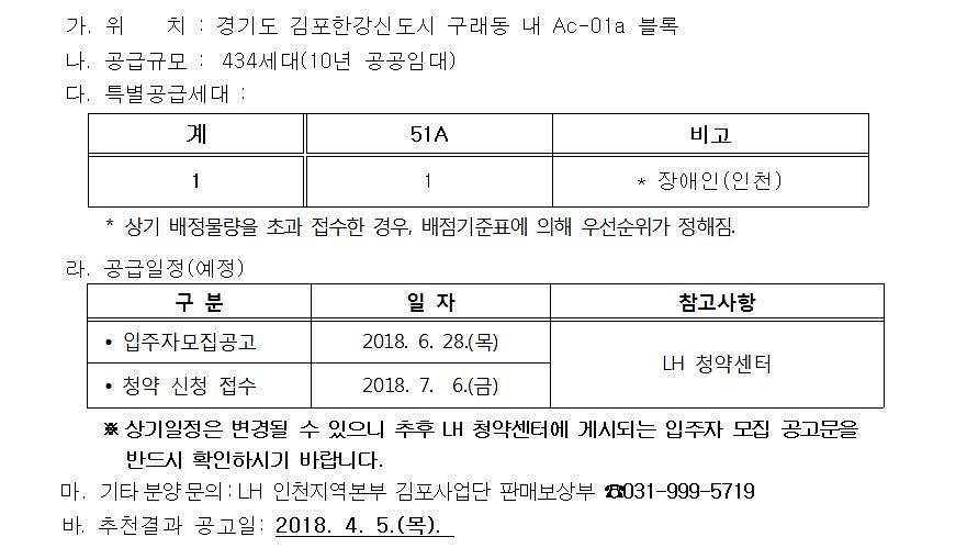 (10년 공공임대주택)장애인특별공급 신청 안내(김포한강 Ac-01a블록)