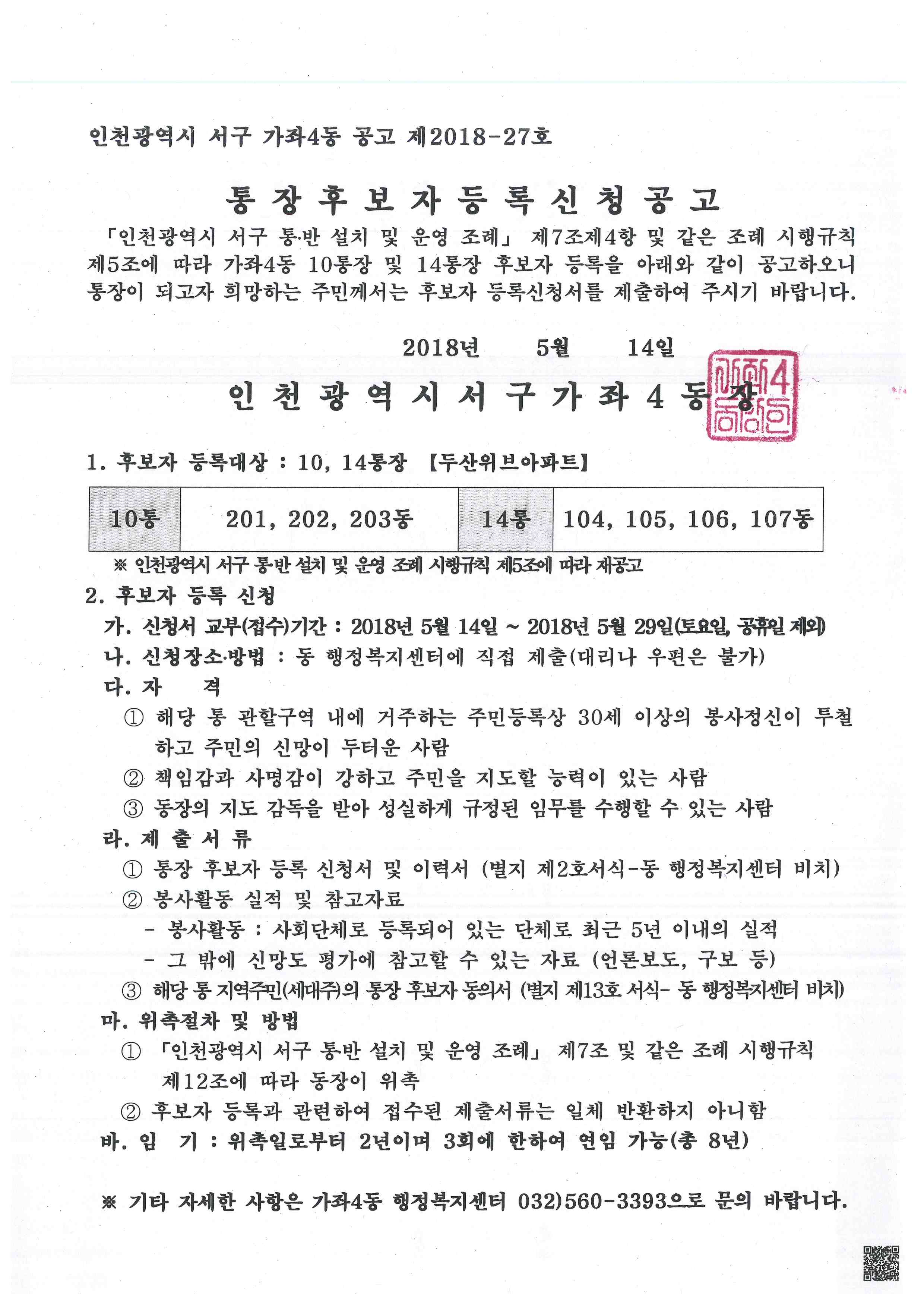 □ 가좌4동 10통 및 14통 공개모집관련 현재 세대수(2018.5.14일 기준)
