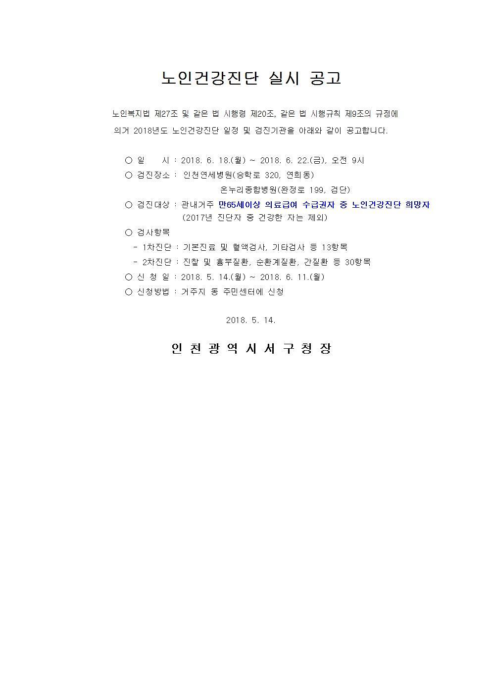 2018년도 노인건강진단 실시 공고