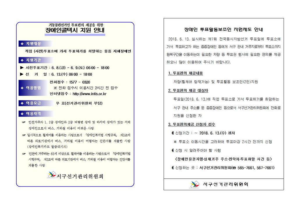 장애인콜택시 지원 및 장애인 투표활동보조인 지원 안내