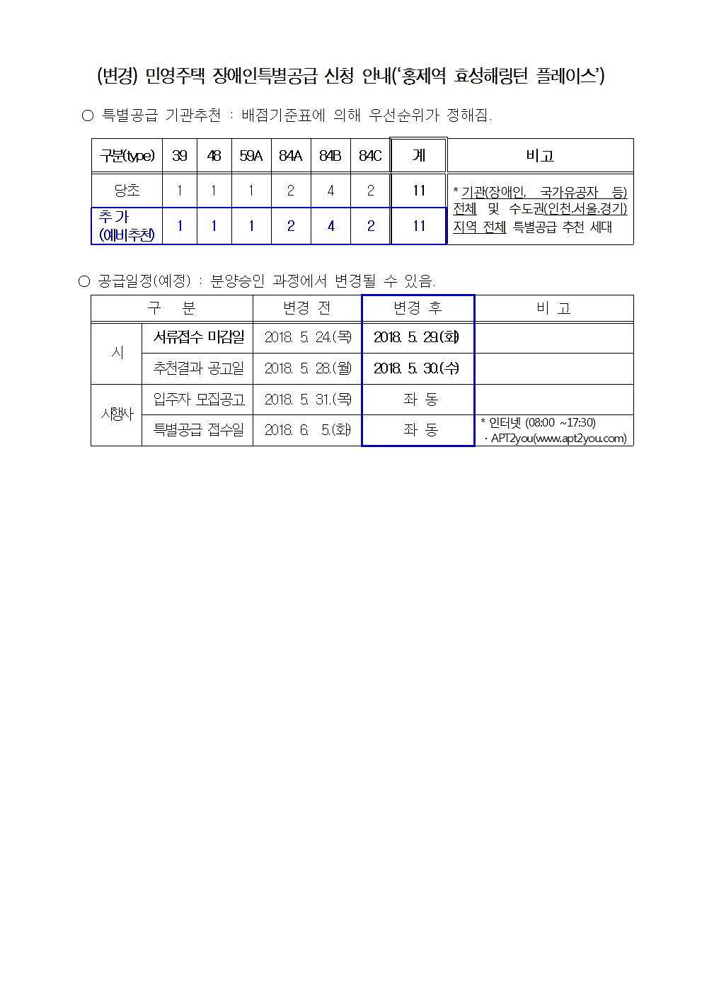 (변경) 민영주택 장애인특별공급 신청 안내 (‘홍제역 효성해링턴 플레이스’)