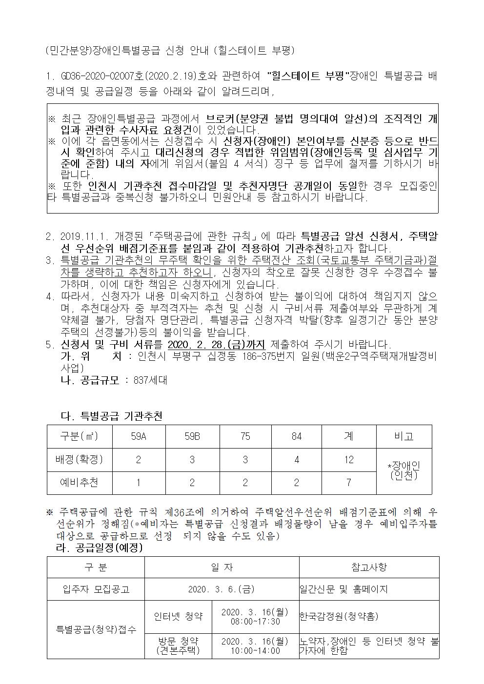 (민간분양)장애인특별공급 신청 안내(힐스테이트 부평)