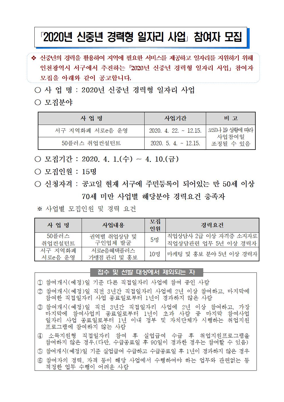 『2020년 신중년 경력형 일자리사업 』 참여자 모집 홍보