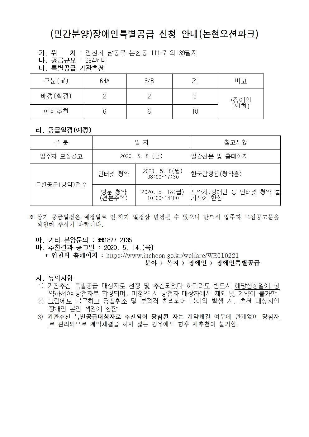 (민간분양)장애인특별공급 신청 안내(논현오션파크)