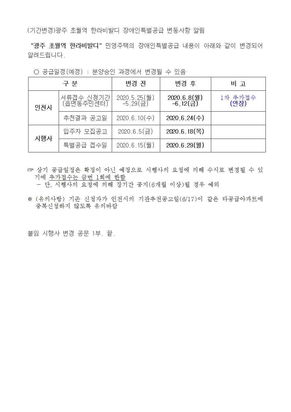 (기간변경)광주 초월역 한라비발디 장애인특별공급 변동사항 알림