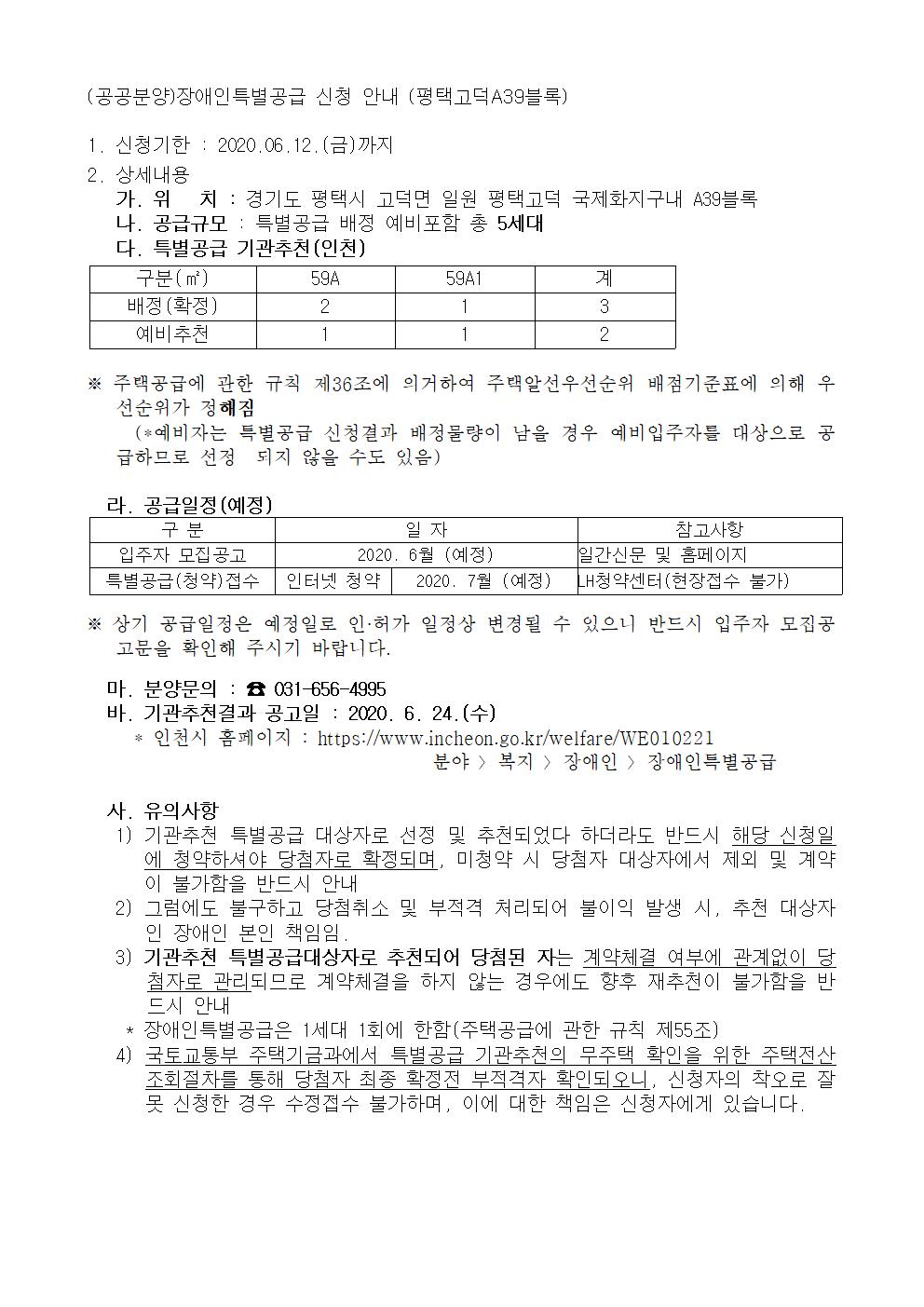 (공공분양)장애인특별공급 신청 안내 (평택고덕A39블록)001