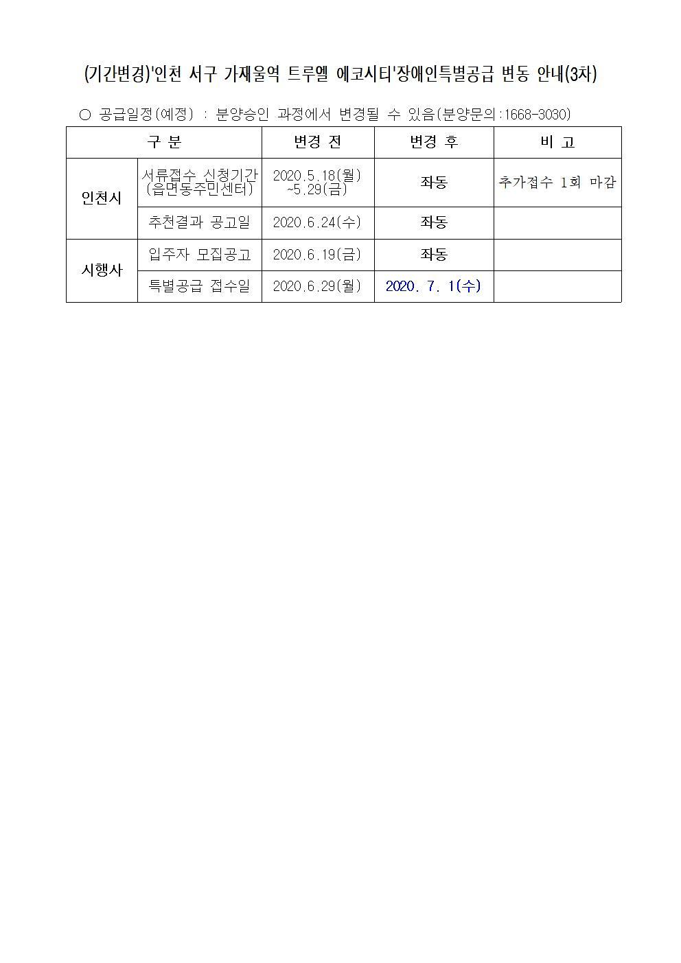 (기간변경)'인천 서구 가재울역 트루엘 에코시티'장애인특별공급 변동 안내(3차)