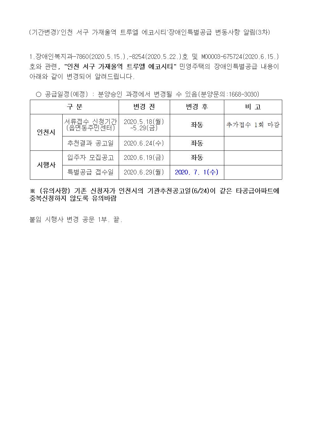 (기간변경)인천 서구 가재울역 트루엘 에코시티 장애인특별공급 변동사항 알림(3차)001