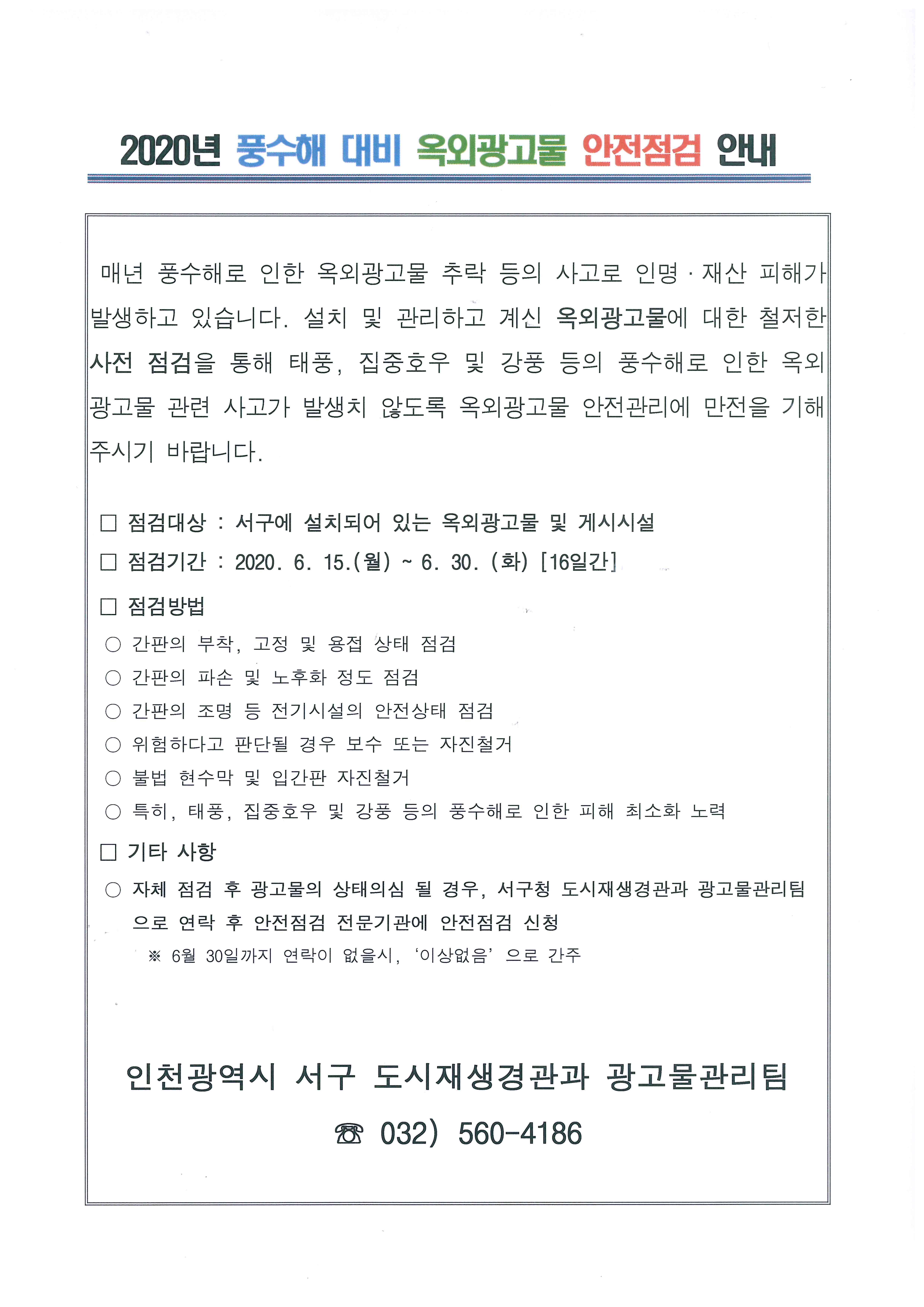 2020년 풍수해 대비 옥외광고물 안전점검 안내