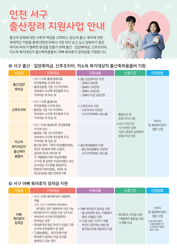 인천 서구 출산장려 지원사업 안내 (저출산 극복 "아빠육아 응원" 홍보영상 첨부)