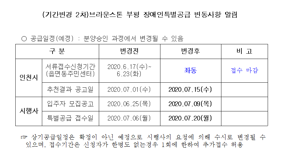 (기간변경 2차)브라운스톤 부평 장애인특별공급 변동사항 알림