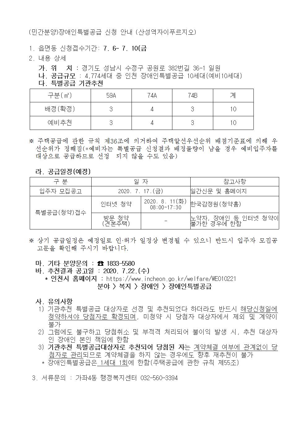 (민간분양)장애인특별공급 신청 안내(산성역자이푸르지오)