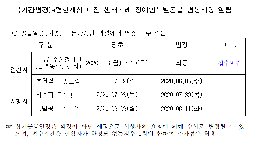 기간변경)e편한세상 비전 센터포레 장애인특별공급 변동사항 알림
