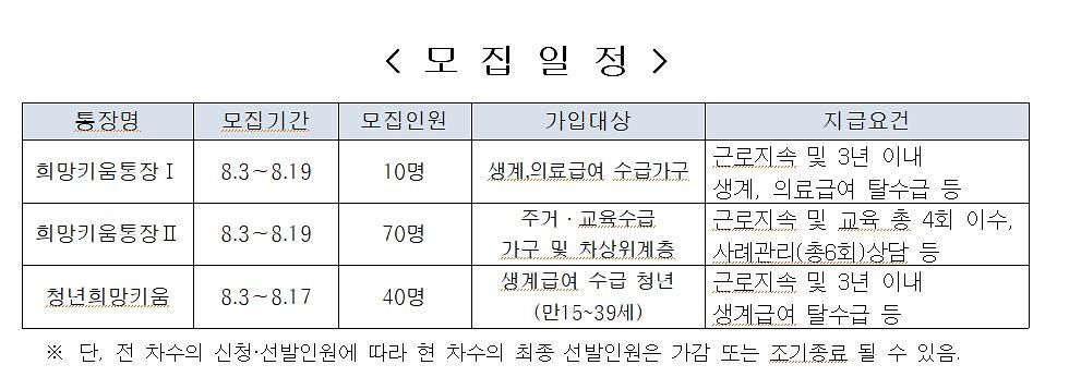 2020년 8월 자산형성사업 모집 안내