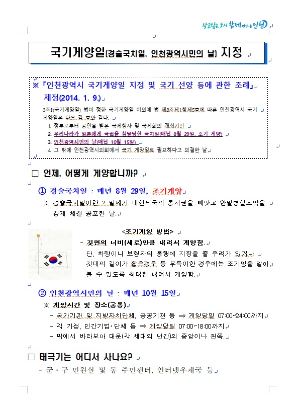 국기게양일(경술국치일, 인천광역시민의 날) 홍보 및 국기게양 협조 요청