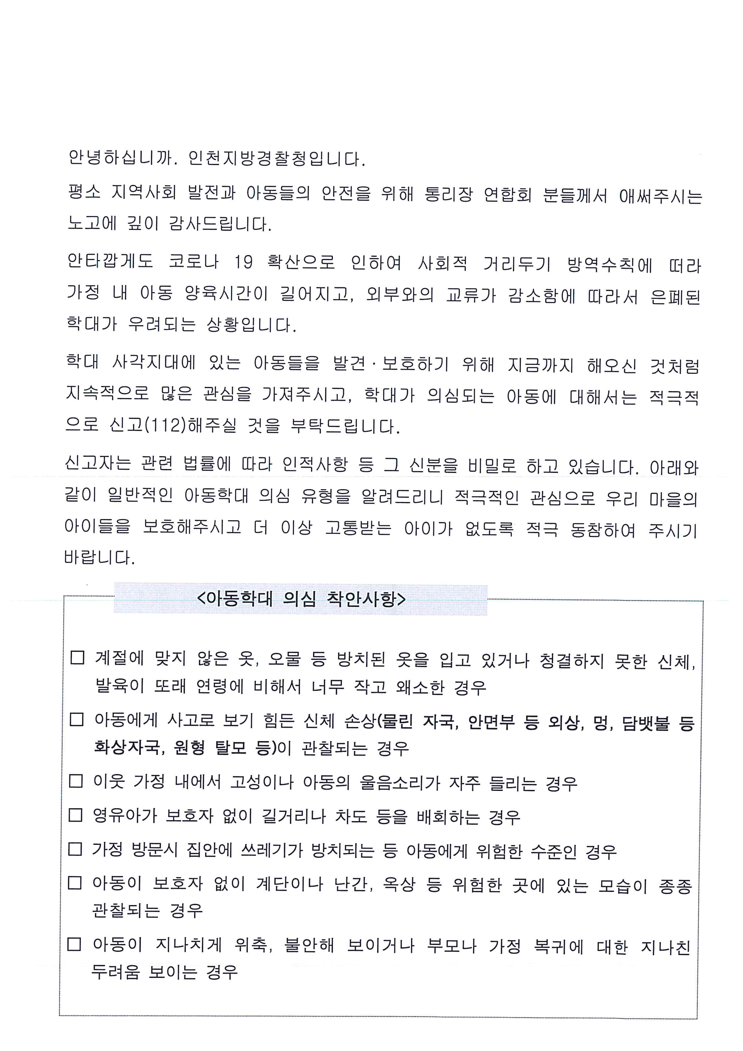 아동학대 예방을 위한 대구민 안내