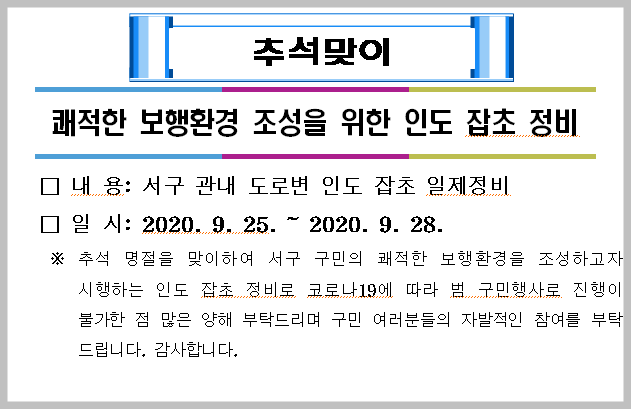추석맞이 인도 잡초제거 일제정비 안내