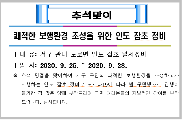 추석맞이 쾌적한 보행환경 조성을 위한 인도 잡초 정비