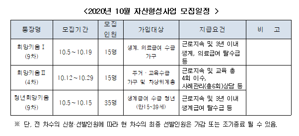 2020년 10월 자산형성사업 모집 및 접수 안내