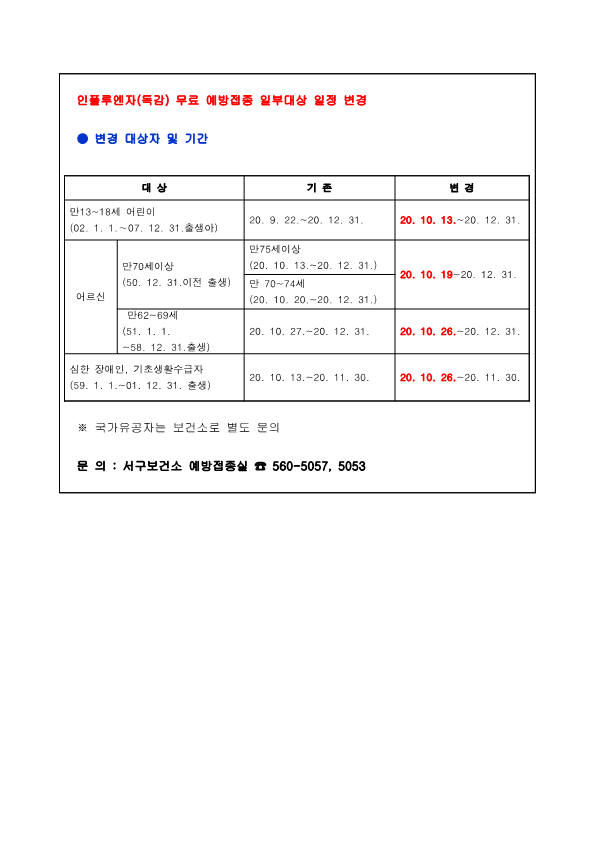 문 의 : 서구보건소 예방접종실 ☎ 560-5057, 5053
