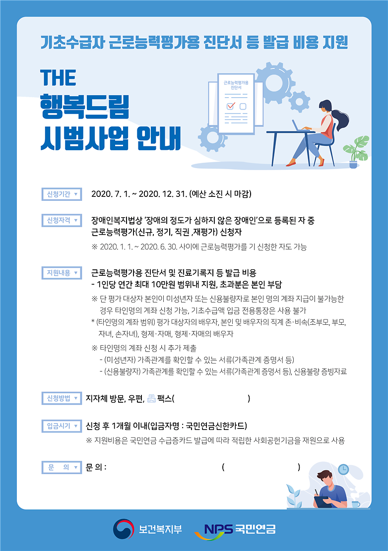 장애인 수급자를 대상으로 근로능력평가용 진단서 등 발급 비용을 지원하는