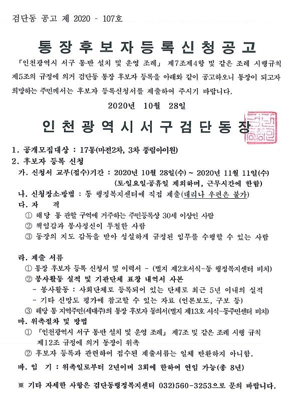 검단동 통장공개모집공고(17통장)