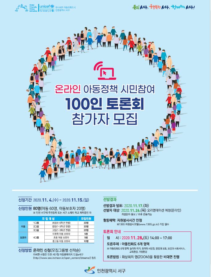 온라인 아동정책 시민참여 100인 토론회 참가자 모집
