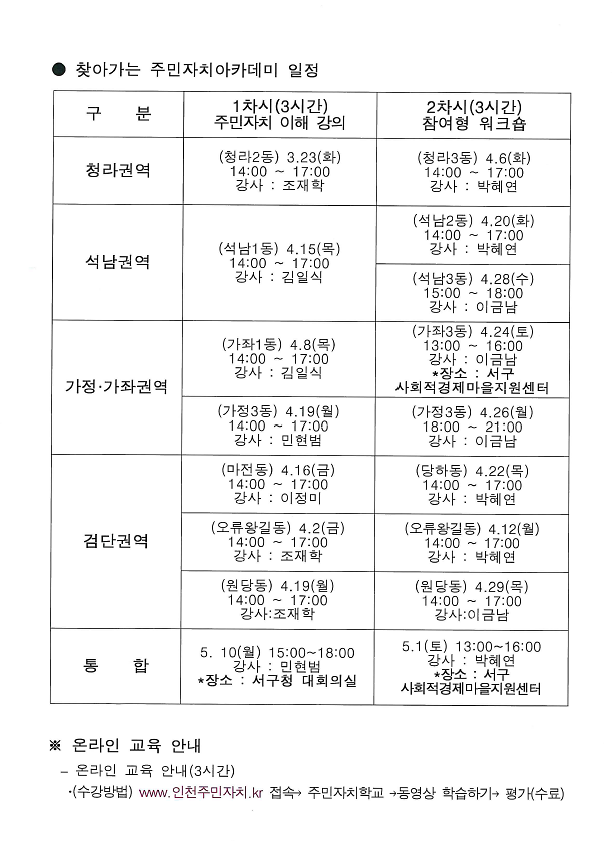 [주민자치아카데미 일정 안내]