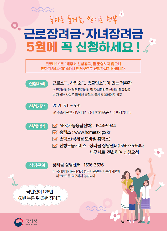 근로장려금, 자녀장려금 5월에 꼭 신청하세요.