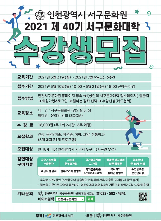 2021년 제 40기 서구문화대학 수강생모집 안내