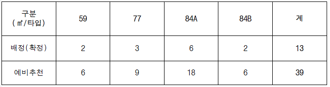 ■ 공급규모 : 인천 장애인특별공급 13세대(예비 39세대)