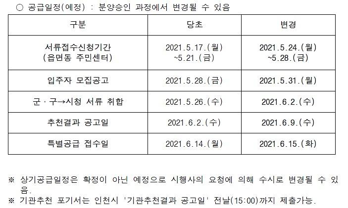 (변경) '양주 회천 A18·A21블록'장애인 특별공급 기간변경 알림