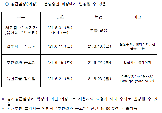 '파주 운정 신도시 A9,A11블록 중흥S클래스' 장애인 특별공급 내용이 아래와 같이 변경되었습니다.