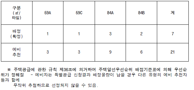 ■ 공급규모 : 인천 장애인특별공급 7세대(예비 21세대)