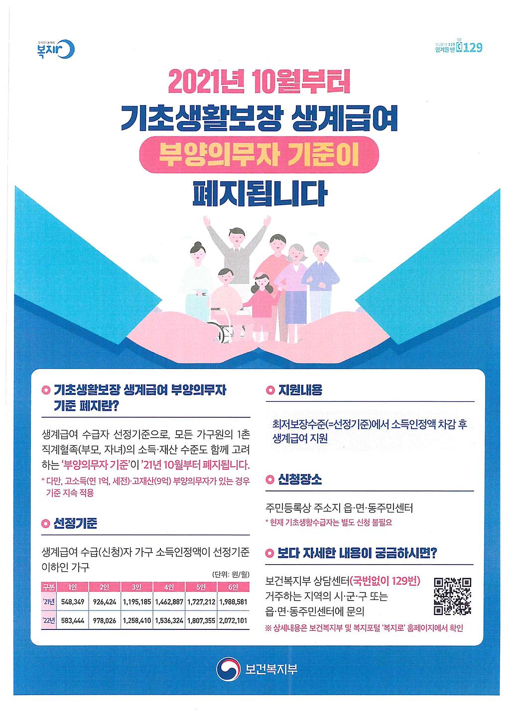 2021년 기초생활보장 생계급여 부양의무자 기준 폐지 안내