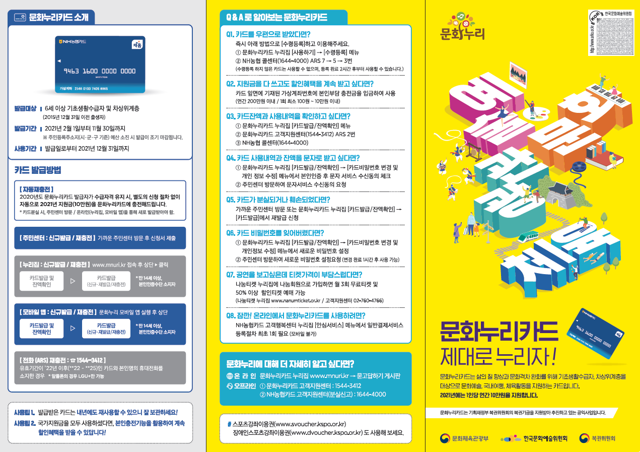 - 2020년 문화누리카드 발급자가 수급자격 유지 시, 별도의 신청 절차 없이