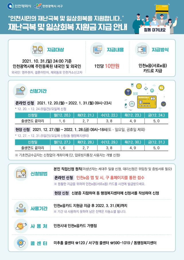 인천시민을 위한 <재난극복 및 일상회복 지원금> 신청 안내