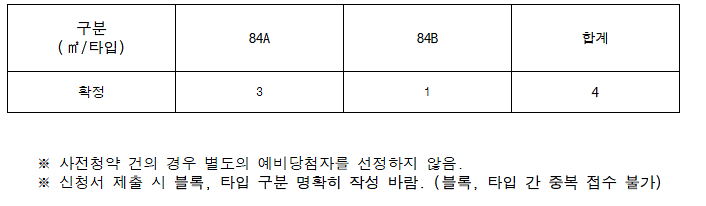 ■ 공급규모 : 확정 4세대 (배점기준표에 의해 고득점자 우선순위 부여)