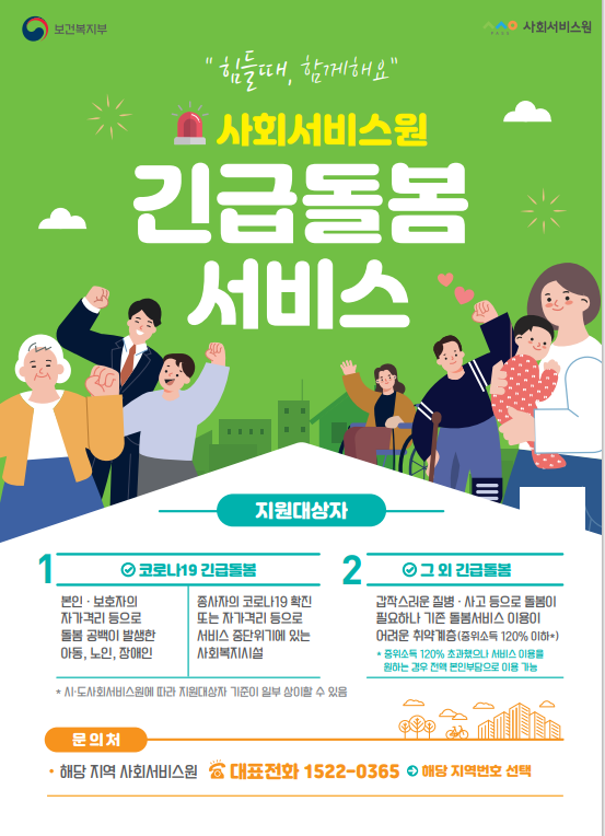 「긴급돌봄 지원사업」돌봄 신청서식 보완 및 지원단 모집 안내
