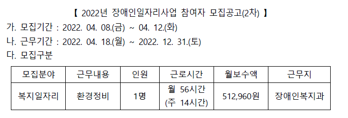 ***2022년 장애인일자리사업 모집공고에 따른 신청 안내***