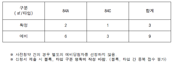 ■ 공급규모 : 확정 3세대, 예비 9세대 (배점기준표에 의해 고득점자 우선순위 부여)