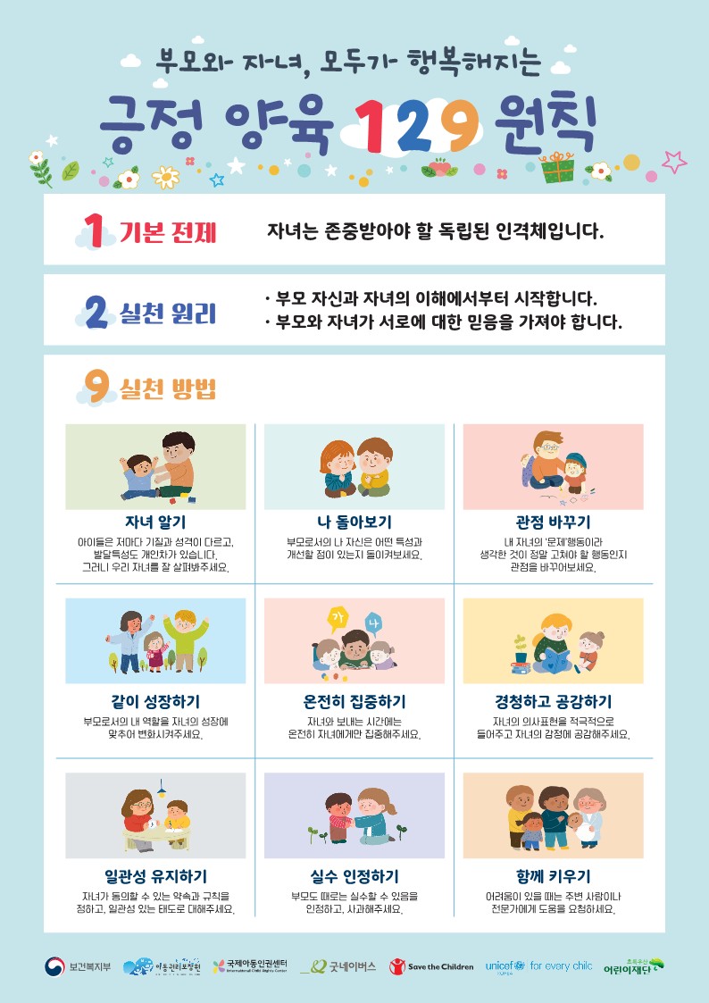 긍정양육 129 원칙홍보 포스터( 한국어포함 13개 언어)입니다.