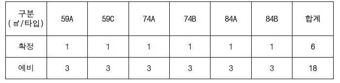 2) 공급규모 : 확정 6세대, 예비 18세대 (배점기준표에 의해 고득점자 우선순위 부