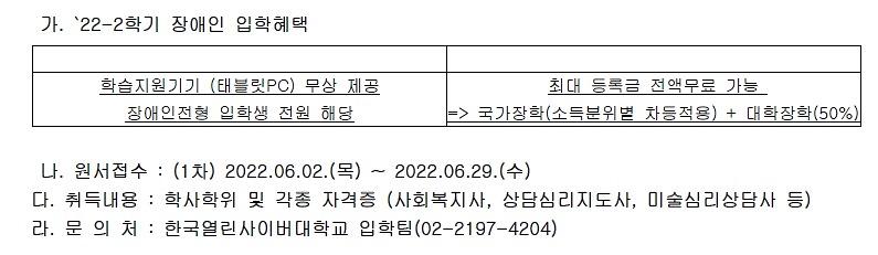 장애인행정도우미, 사이버대 교육지원 모집안내(태블릿PC지원)