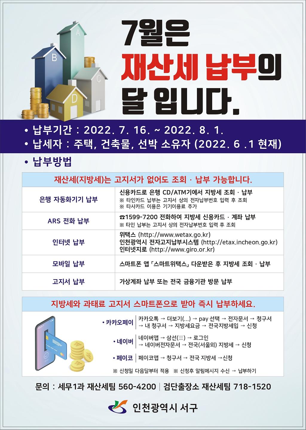 ◆ 문 의: 서구청 세무1과 재산세팀 (☎ 560-4200)