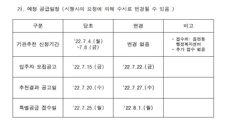 ○ '읍면동 기관추천 신청기간'과 '군구별 명단 제출 일자'는 변동 없음