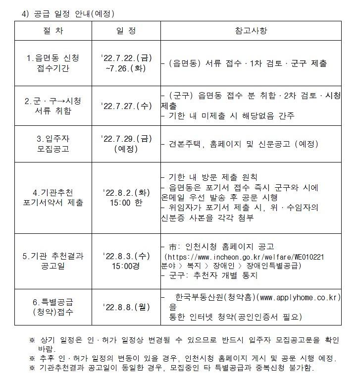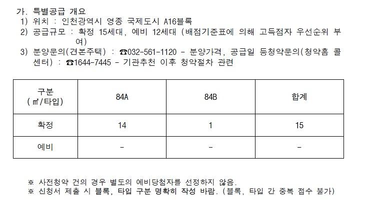 2) 또한 인천시 기관추천자로 선정된 이후 국토교통부 주택기금과에서 특별공급 기
