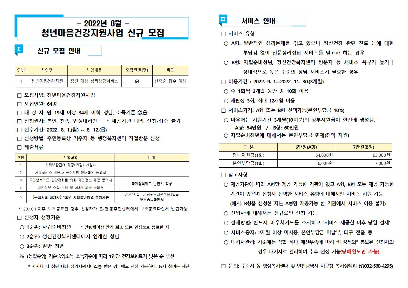 8월 청년마음건강지원사업 신규모집
